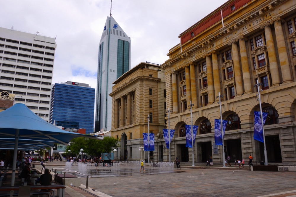 Nach einem fast schon komatösen Schlaf nahmen wir heute Perth unter die Füsse. Die Stadt fällt durch ihren auffälligen Architekturmix auf, wo alt neben neu scheinbar zufällig zusammengewürfelt wird.