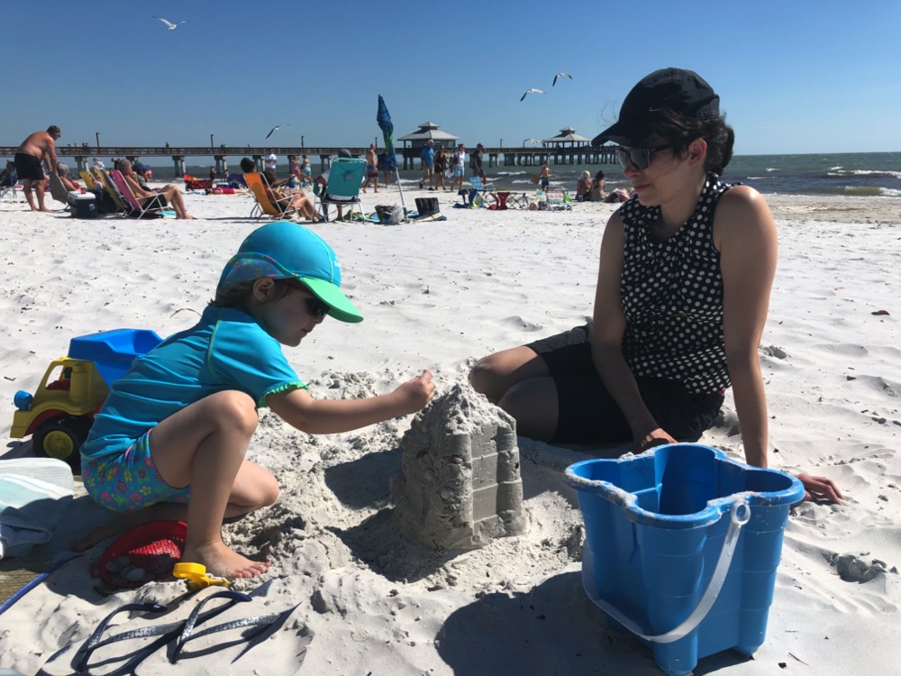 Und tatsächlich wurde es ein sonnenverwöhnter Tag. Nach dem Lunch im Palmetto-Pine Golf Restaurant zog es uns - und natürlich vor allem Elina - an den Strand von Fort Myers Beach. Der feine Sand ist sensationell, man wird ihn einfach nicht mehr los und als Souvenir knirscht es auch noch Stunden nach dem Ausflug zwischen den Zähnen.