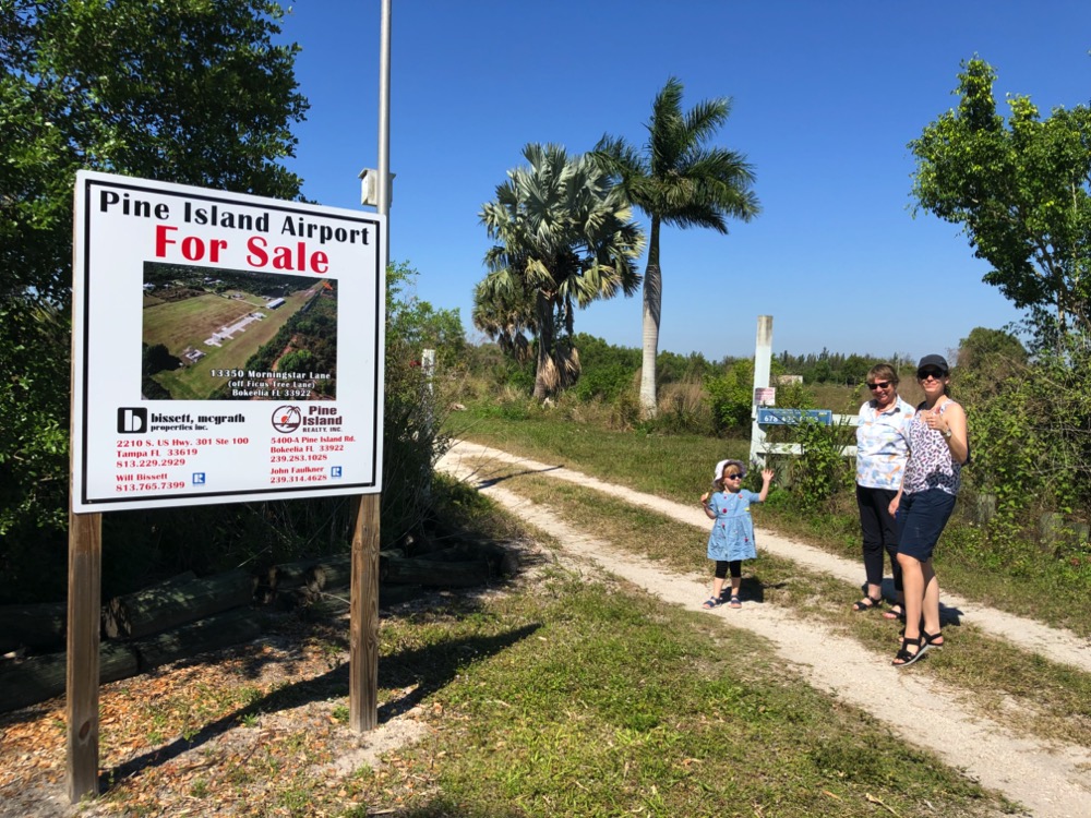 Am Nachmittag besuchten wir dann Pine Island, eine weitere der zahlreichen Inseln in der Umgebung, mit dem Städtchen Bokeelia. Was es dort zu sehen gibt? Gute Frage - nichts! Aber davon ganz schön viel. Immerhin fanden wir zwischen den Palmen einer Palm-Baumschule (ja das gibt es tatsächlich) sogar zwei Flugplätze! Also den einen fanden wir auf der Karte und den anderen hätten wir gerade kaufen können (siehe Foto).