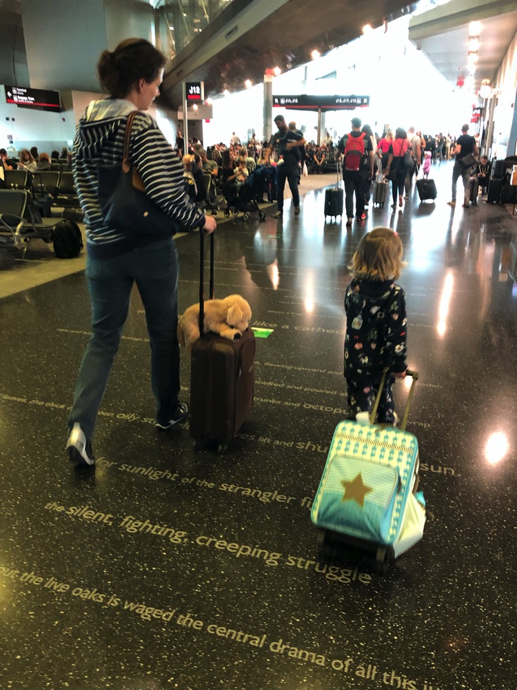 Nachdem wir uns am Flughafen in Miami wirklich nur ungern wieder von unserem fahrbaren Untersatz getrennt hatten, ging es weiter mit der Gepäckaufgabe und der Suche nach unserem Gate. Schon vor vier Jahren durchliefen wir dazu den ganzen Flughafen und fanden ganz zuhinterst - jedesmal zuhinterst - den Swiss-Schalter. Und der Flieger steht dann natürlich auch... Tada: Ganz zuhinterst! Für uns als „akklimatisierte pseudoamerikanische Bewegungsmuffel“ grundsätzlich doof, gleichzeitig aber eine gute Gelegenheit, wieder einmal richtig die Beine zu vertreten. Und schliesslich geht es jetzt ja auch noch für 9.5 Stunden in die „Sardinenbüchse“ des A330.