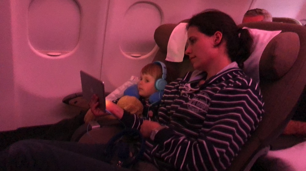 Elina machte es super auf dem Rückflug! Sie war auch diejenige, die wahrscheinlich am meisten Schlaf gefunden hatte. Nur gegessen hat sie praktisch nichts. Wir können es aber auch sehr gut nachvollziehen. Die Verpflegung bei der Swiss war einmal mehr definitiv kein Highlight und das Bordpersonal war mit Kindern offensichtlich überfordert. Oder sie konzentrierten sich alle einfach auf vier gewisse andere...