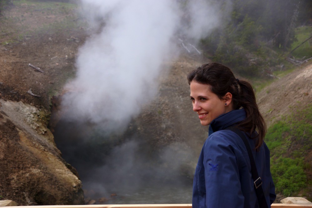 Wir beschlossen, schon mal die Sehenswürdigkeiten auf der Canyonroute in Angriff zu nehmen. Bald zeigten die ersten Dampfschwaden heisse Stellen an, also Orte, an denen Gase und Hitze aus dem Erdinnern Wasser oder Schlamm heftig brodeln lassen. Unverkennbar dabei: der intensive Geruch nach Schwefelwasserstoff. Faszinierend und ein bisschen unheimlich, wie nahe man dem Erdinnern hier ist!